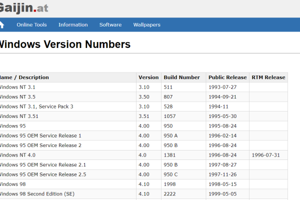 Windows Version Numbers