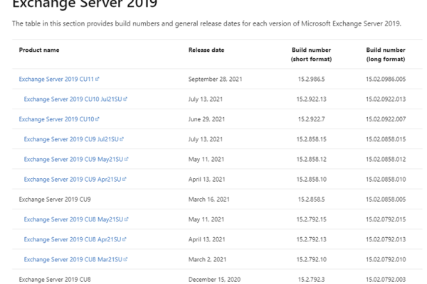 Exchange Build Numbers